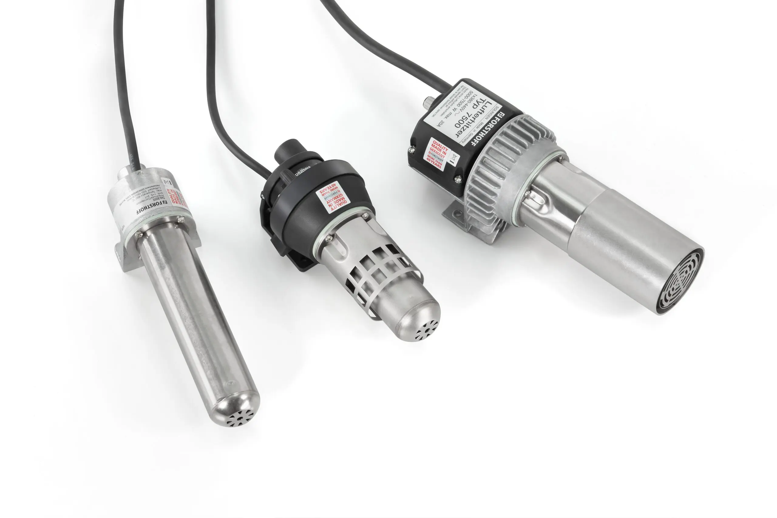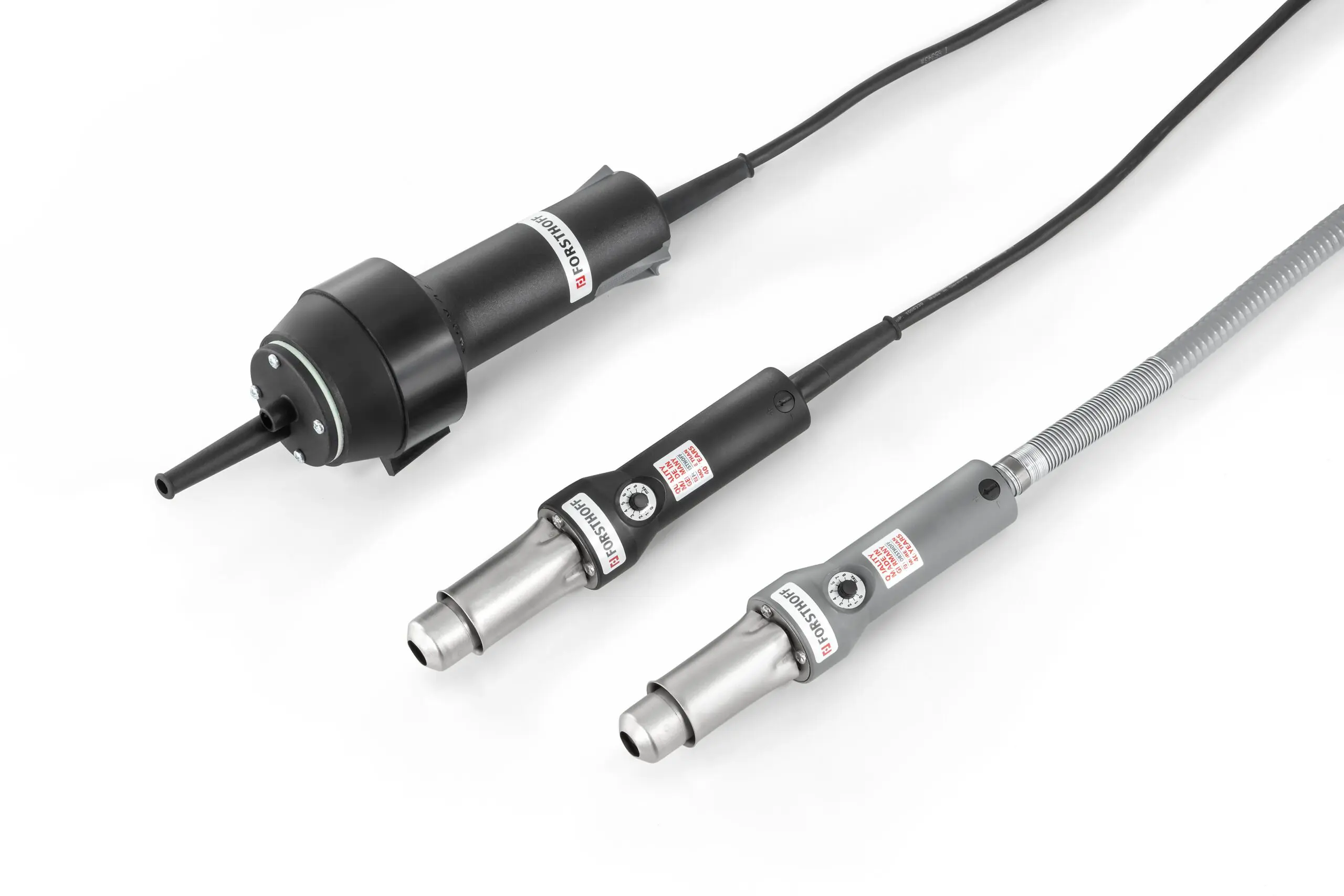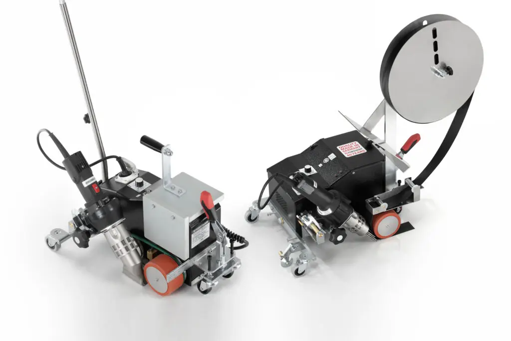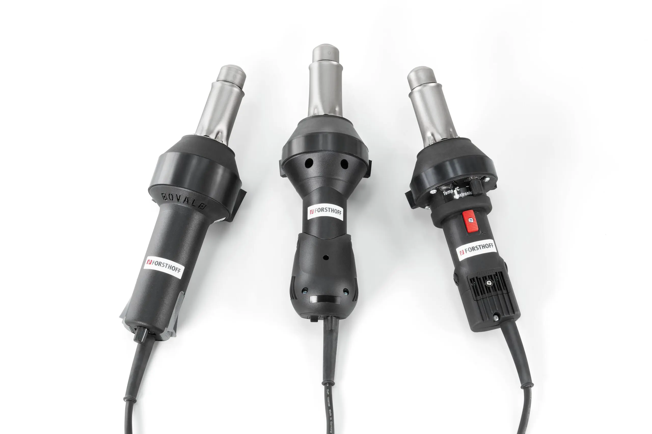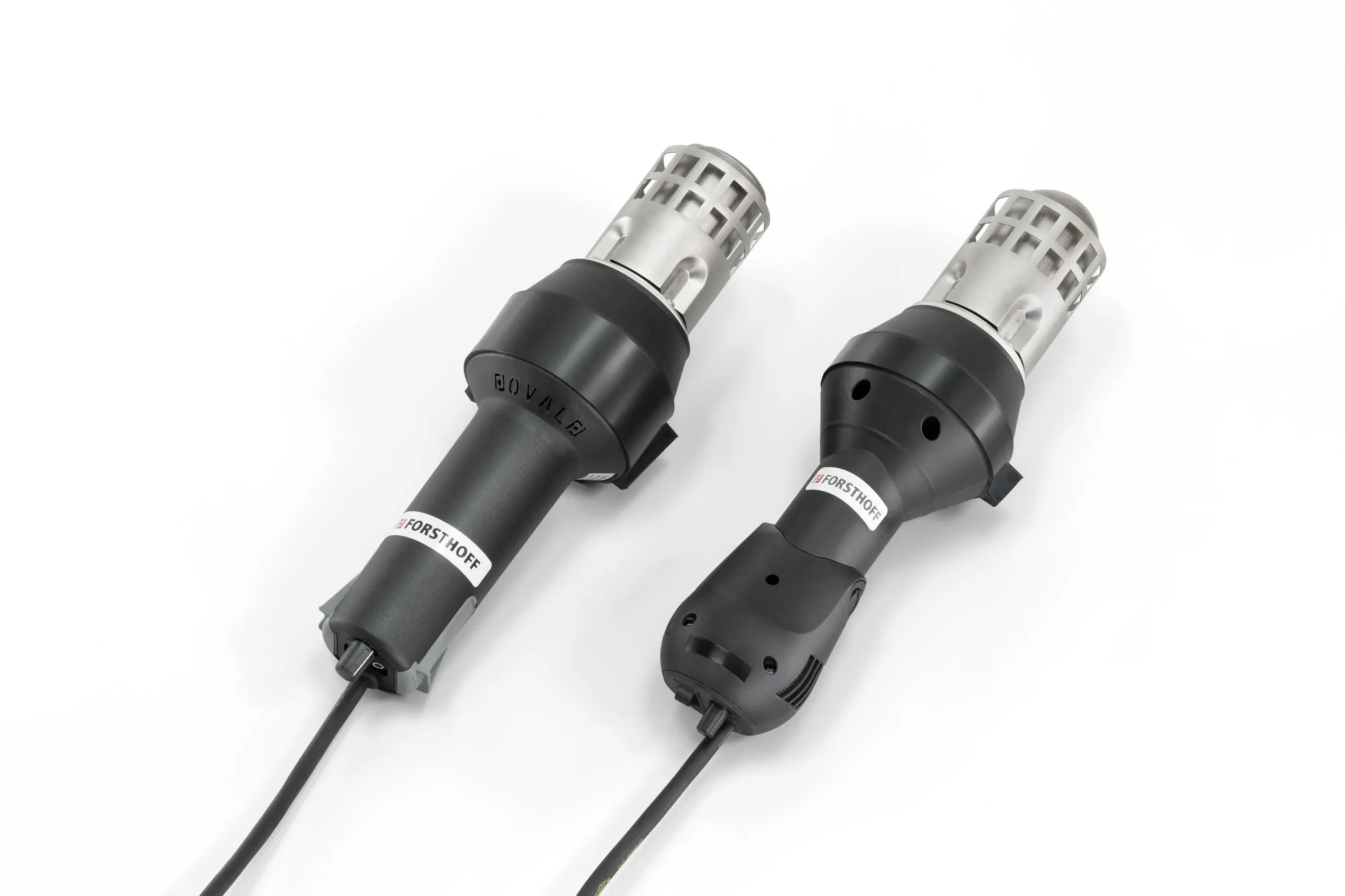 Le souffleur à air chaud automatique dispose d’une puissance de chauffage de 4000 W 230 V CA, qui peut être régulée électroniquement en continu jusqu’à 700 °C. L’unité de conduite est équipée d’un moteur puissant et d’un boîtier lourd, ce qui garantit un entraînement rapide et une forte pression. L’appareil démarre automatiquement après le pivotement de la tête de soudage.