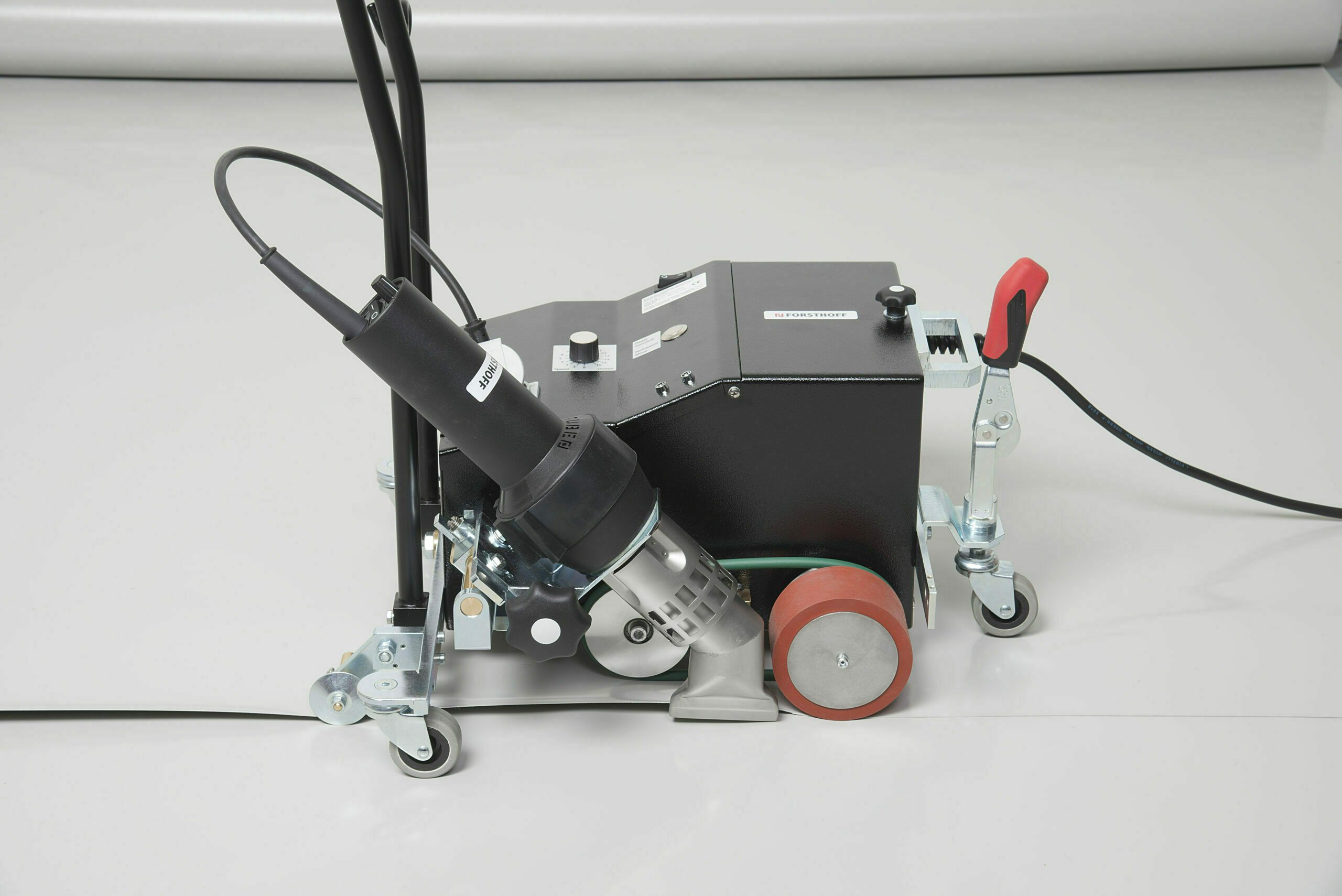 La machine à souder pour toiture Forsthoff-D est la machine de soudage optimale pour le soudage de bandes de toiture thermoplastiques. Cet appareil convient également comme machine de soudage par recouvrement pour le soudage des bâches et des films thermoplastiques lourds.